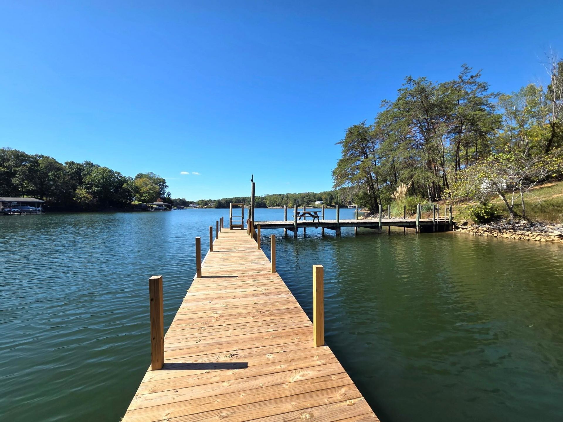 Nestled on 2.82 Acres with 100 ft of lakefront . Bring your fishing gear and your friends and family to this adorable Lakefront Home. Great Floor plan with Large Open Kitchen, Large Island, Great Room with open dining area. Primary bedroom with full bath, large walk in shower and a Huge walk in closet. Two guest rooms with walk in closets and a full bath. Furnished and ready to enjoy. 2019 New maintenance free deck installed. Community park and picnic area and community boatdock plus community boatramp. Large Storage Shed with roll up door.